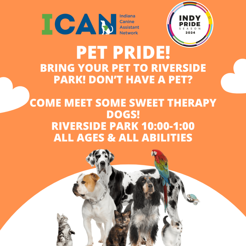 We strive to make all spaces inclusive and are excited to work with Indy Pride- who is also committed to the same thing! Our first partnership is Pet Pride where we will be hosting therapy dogs for this family-friendly event!
